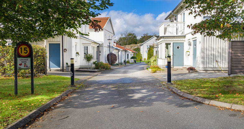 BRF Gästgivaren består av 33 hus belägna på Axelinas väg 1-33 i Torslanda.